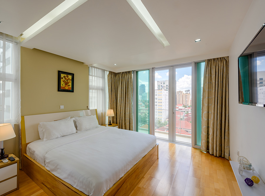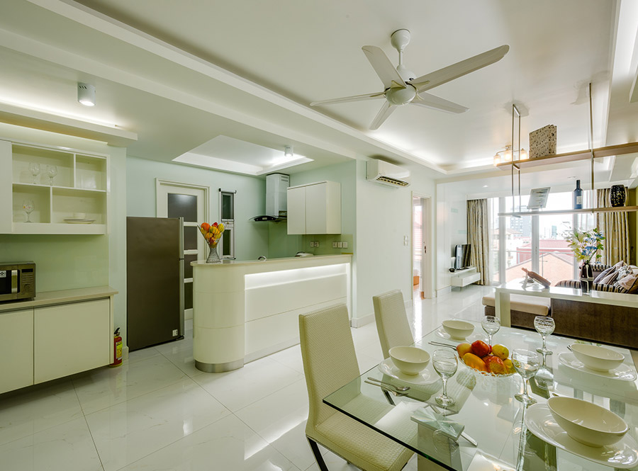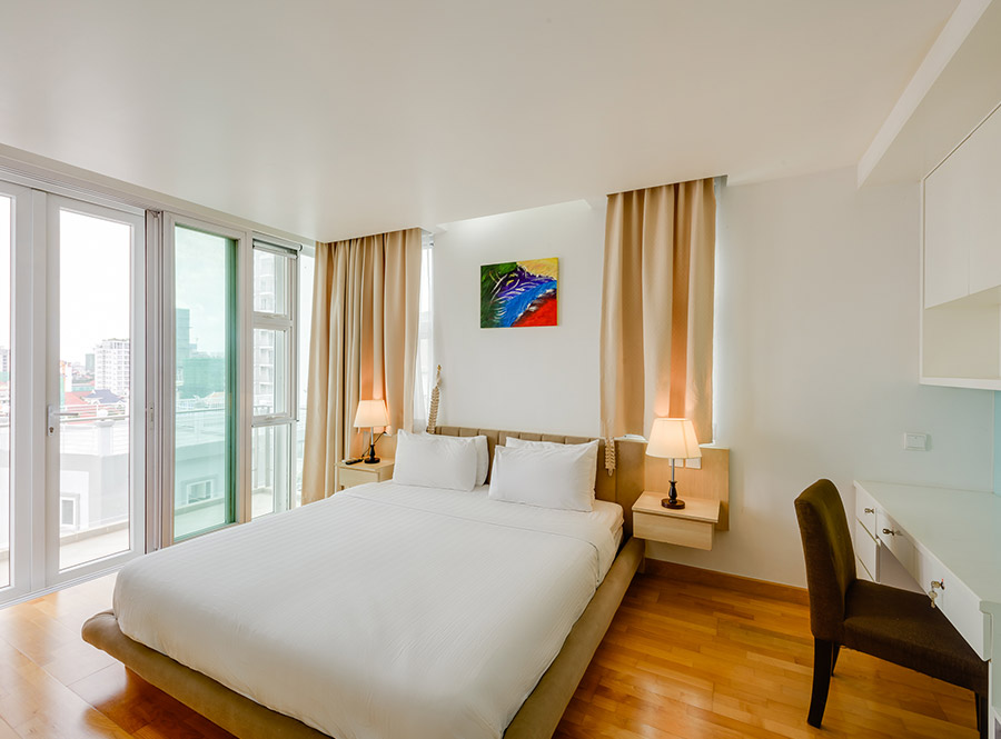 Fully-furnished serviced residence with 24 hours security and access control. Cable TV and complimentary Wi-Fi internet connection. Swimming pool and gymnasium. Housekeeping, Garbage collection and laundry services are also available for the convenient of your stay. Free parking space and the reception available from 7:30 am till 9:00 pm.