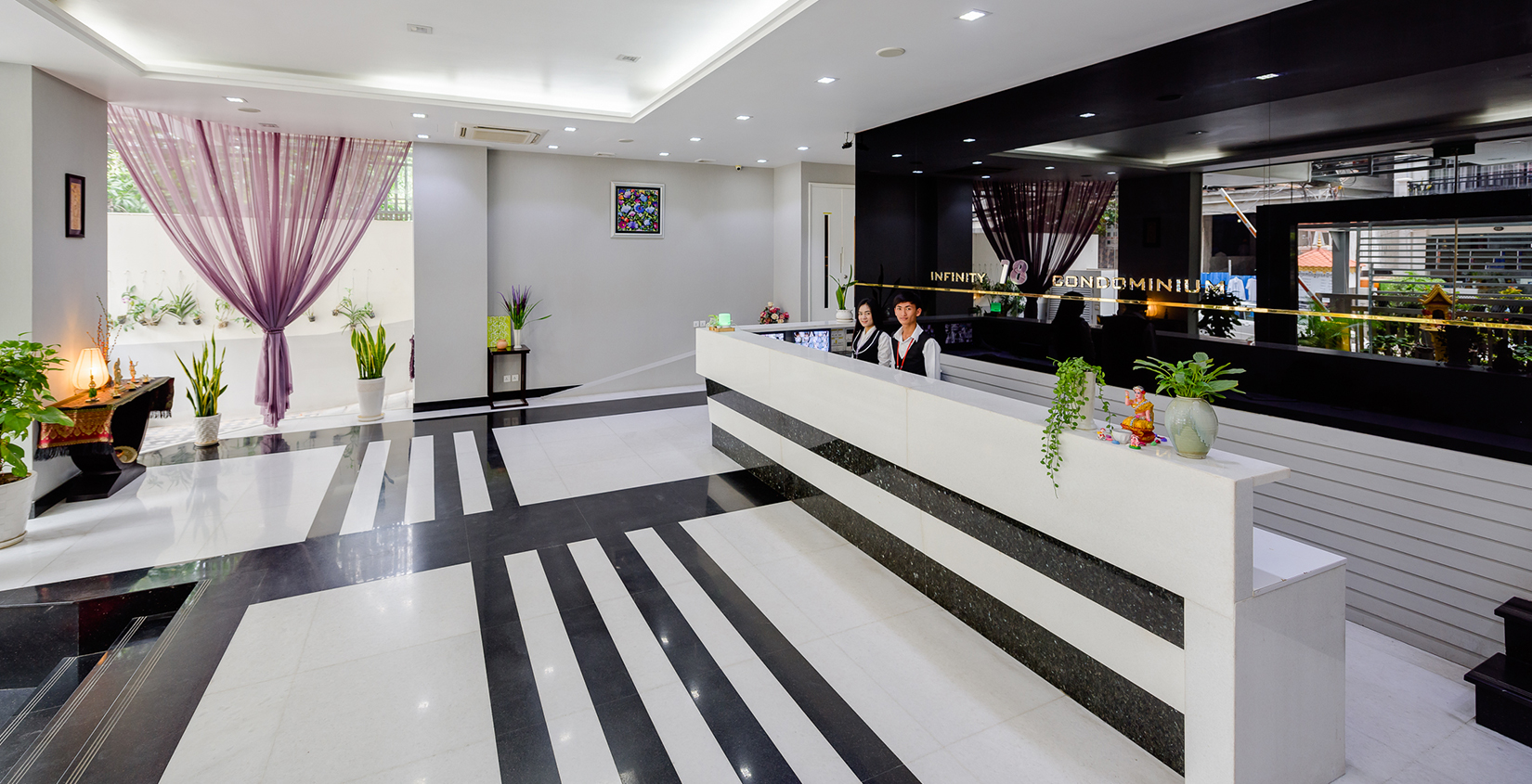 The eleven-storey Infinity 18 Serviced Condominium is located in the heart of Cambodia capital city – Phnom Penh and it’s spotted of a happening street lined with trend-setting variety of local businesses such as bars, restaurants and shopping malls. This area is home to foreign expatriates and well-heeled locals.